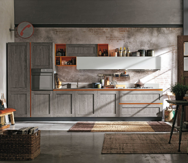 L’exemple le plus évident et la caractéristique distinctive du modèle, est la porte à cadre qui, dans les cuisines Stosa City, s’exprime dans un style créatif et non conventionnel. Une esthétique solide et forte, une cuisine qui offre des sensations tactiles et visuelles grâce à ses finitions texturés, effet bois et PET.
